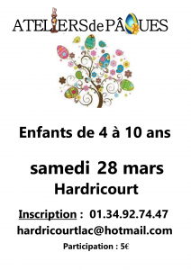 À l’occasion des fêtes de Pâques, le LAC Hardricourt propose des ateliers créatifs aux enfants de 4 à 10 ans.